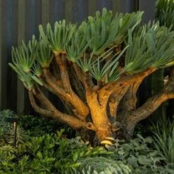 Very slender, very tall, very fast-growing, with lovely silvery blue delicate foliage. Will make a lovely potted specimen while small. Site this one carefully as leyland conifers don’t grow back from old wood and there’s nothing more pitiful than a tree lopped off midway to make room for an overhead cable.